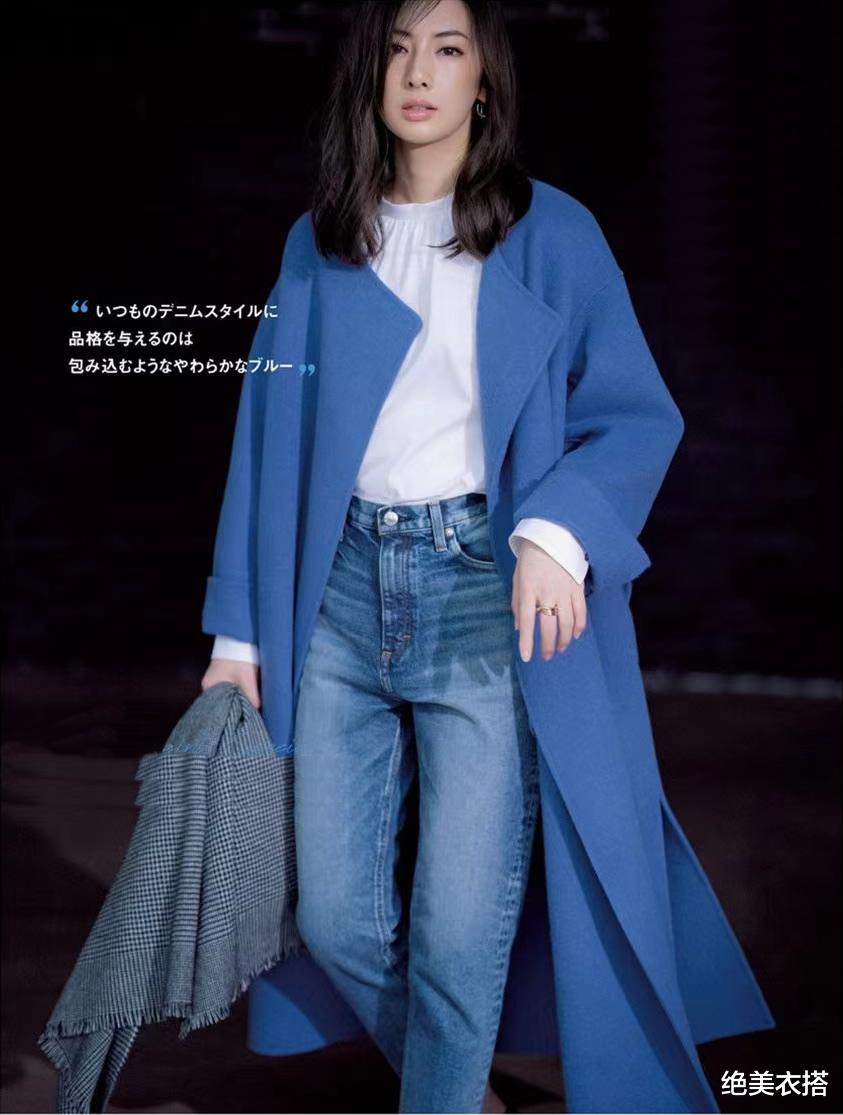 与牛仔裤搭配,一浅一深的蓝色系,毫无违和感。