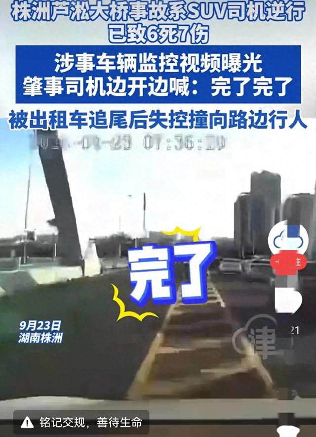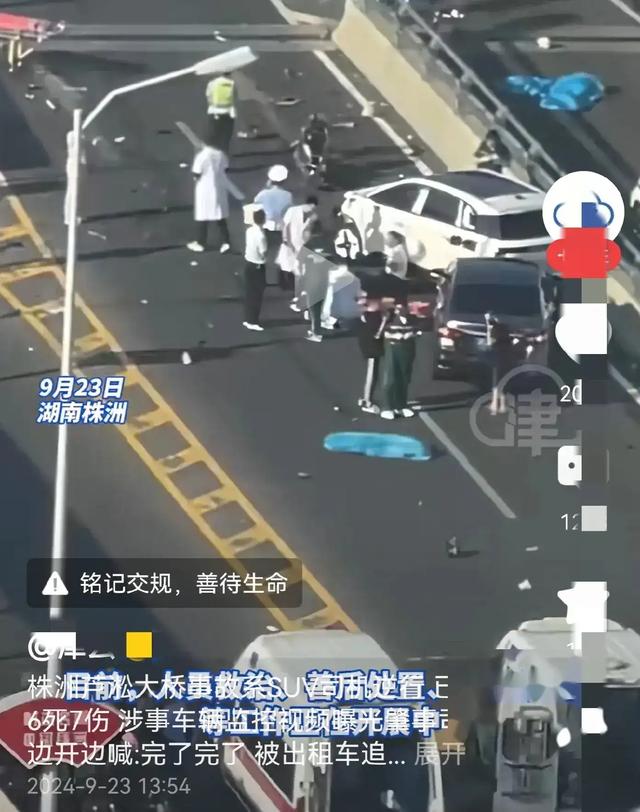 事故详情事故发生在株洲芦松大桥,一辆白色轿车被出租车追尾,导致6死7伤。