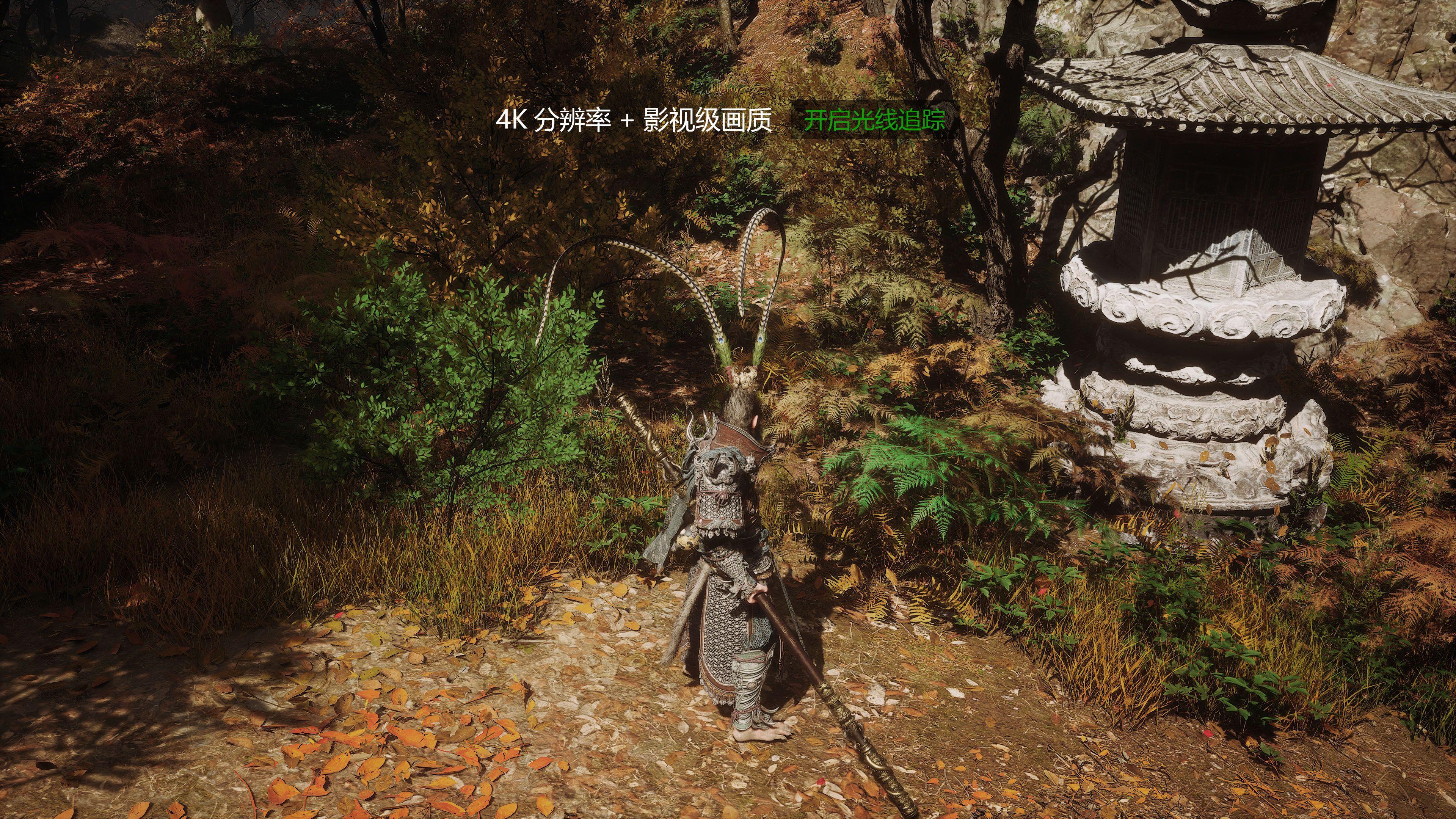 来看《黑神话:悟空》的一组游戏画面对比,我们可以很明显的看出光线追踪对画面质感、细节表现、光影效果的加成。