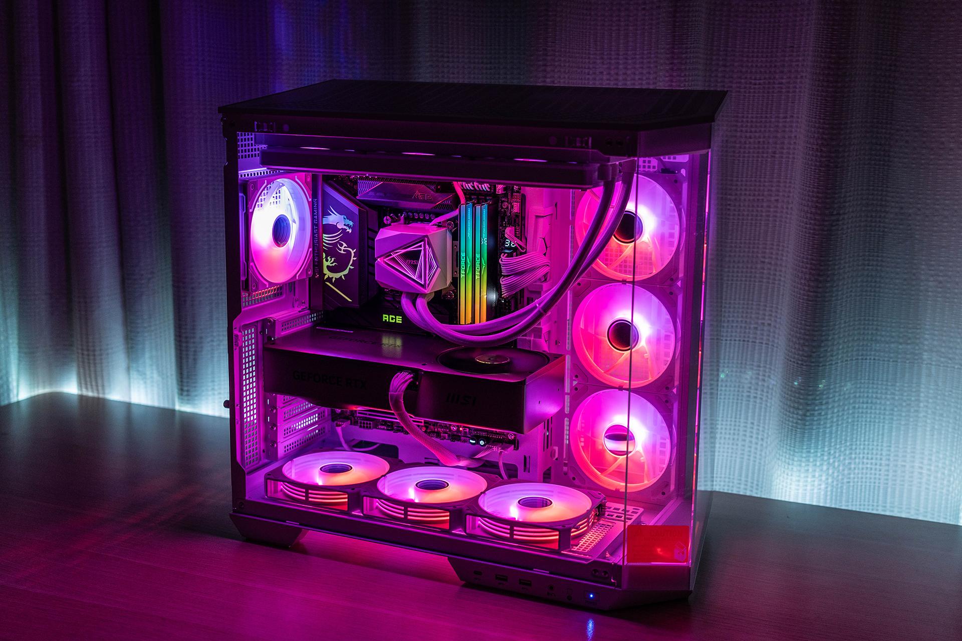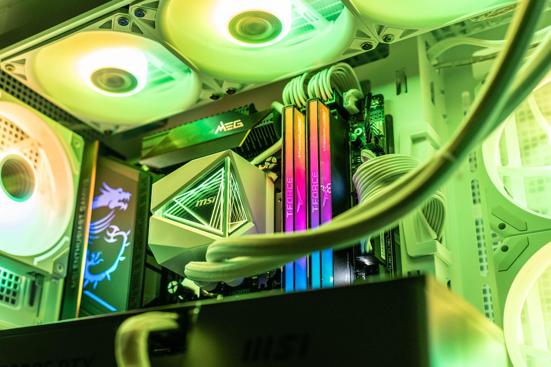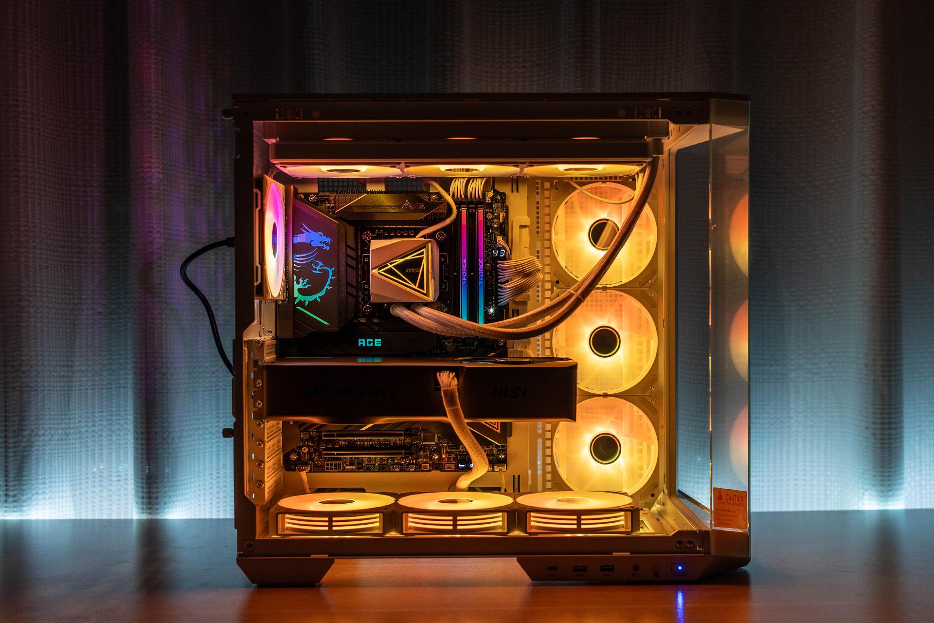 这套主机的灯光来源主要由水冷+7把ARGB风扇+灯条+主板散热装甲上的微星龙盾局RGB LOGO组成,喜欢电竞氛围的小伙伴应该很难抵挡住这套灯效的诱惑吧。