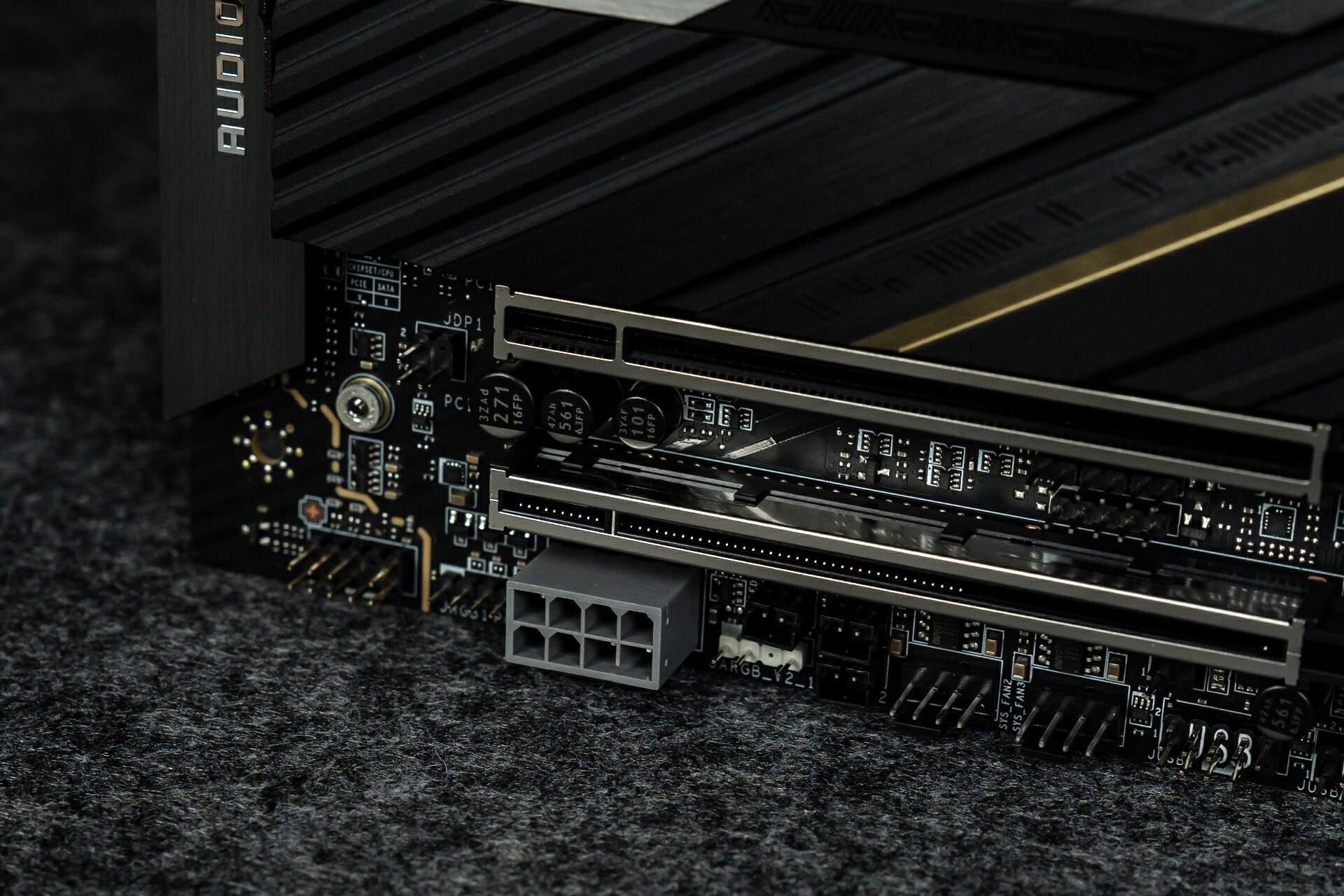 微星 MEG Z890 ACE主板共有3个PCIe插槽,均做了金属加固处理。第一、二个插槽为PCIe 5.0 x16满速通道,第三个插槽为PCIe 4.0x4通道。