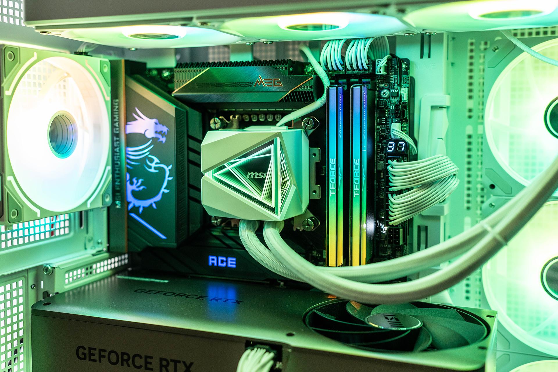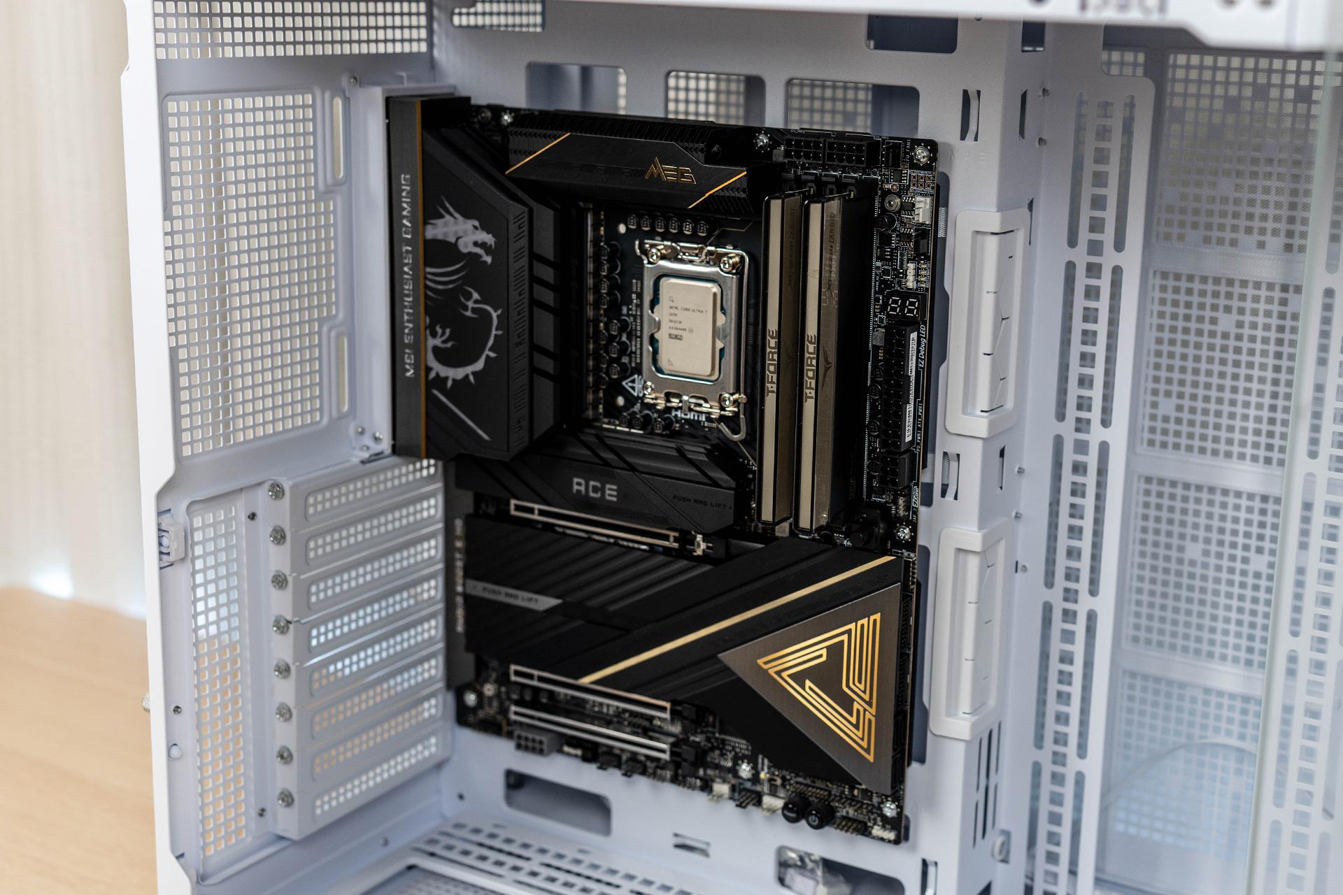 讲道理,黑色的微星 MEG Z890 ACE与白色机箱的撞色搭配还是挺出彩的。