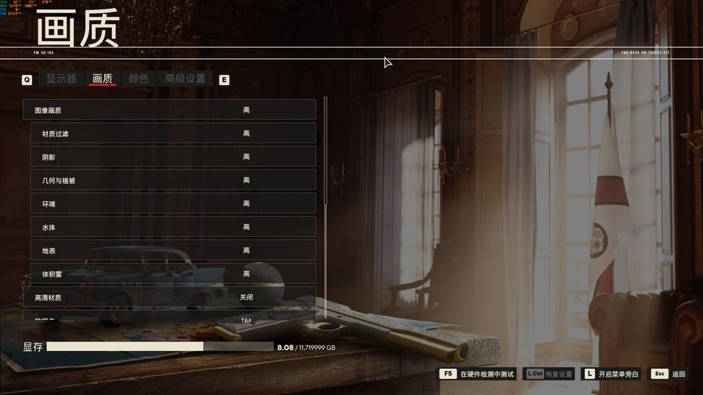 4K分辨率,高等画质,运行测试,平均帧数87。
