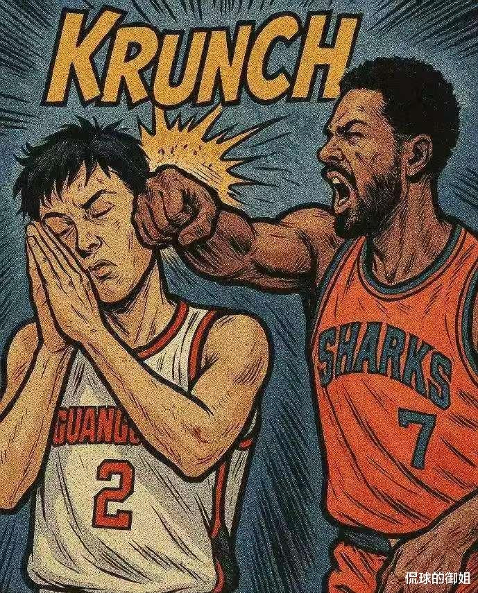 赛后,广东被上海的绝杀时刻,也被媒体做成了漫画,本来末节做出晚安手势的徐杰,因为提前庆祝最后被打脸,上海队小外援哈维绝杀才笑到最后,这组漫画也在网络流传,如下图: