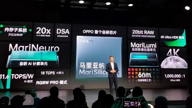 2021年12月,OPPO宣布推出全球首颗6nm影像专用NPU芯片 MariSilicon X。2022年12月14日,OPPO未来科技大会INNO DAY上发布了第二颗自研芯片马里亚纳MariSilicon Y,新产品通过首创的超高速蓝牙解决方案,集成了比传统蓝牙快400%,实现行业最快的12Mbps蓝牙速率,解决了无线蓝牙音频在跨端通讯上的音质和速度的痛点。