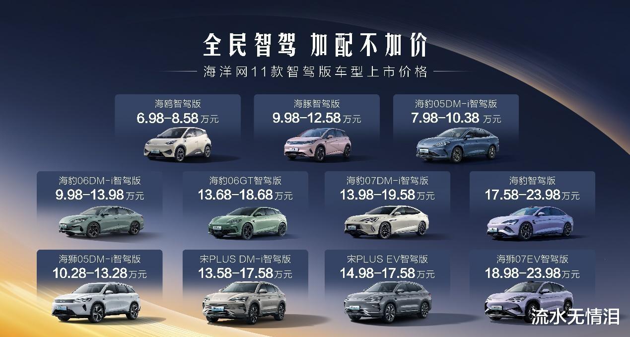 有意思的是,比亚迪不仅做了,还做得彻底。他们推出的11款智驾车型,覆盖了7万到30万元的价格区间。从海鸥到宋PLUS,每一款车型都有自己的特色,但共同点是都搭载了“天神之眼”。这种策略的好处显而易见:不管你的预算如何,总能找到一款适合自己的智驾车型。