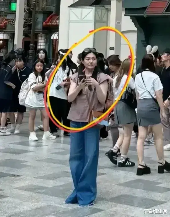 穿着921元的藕粉色粗布短袖,拖地阔腿牛仔裤,完全没有了昔日的光彩。