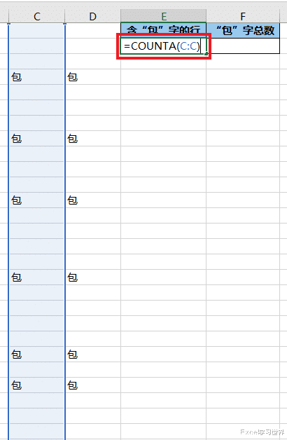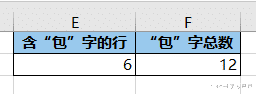 案例:计算出下图 1 中含有“包”字的单元格数和“包”字总数,效果如下图 2 所示。