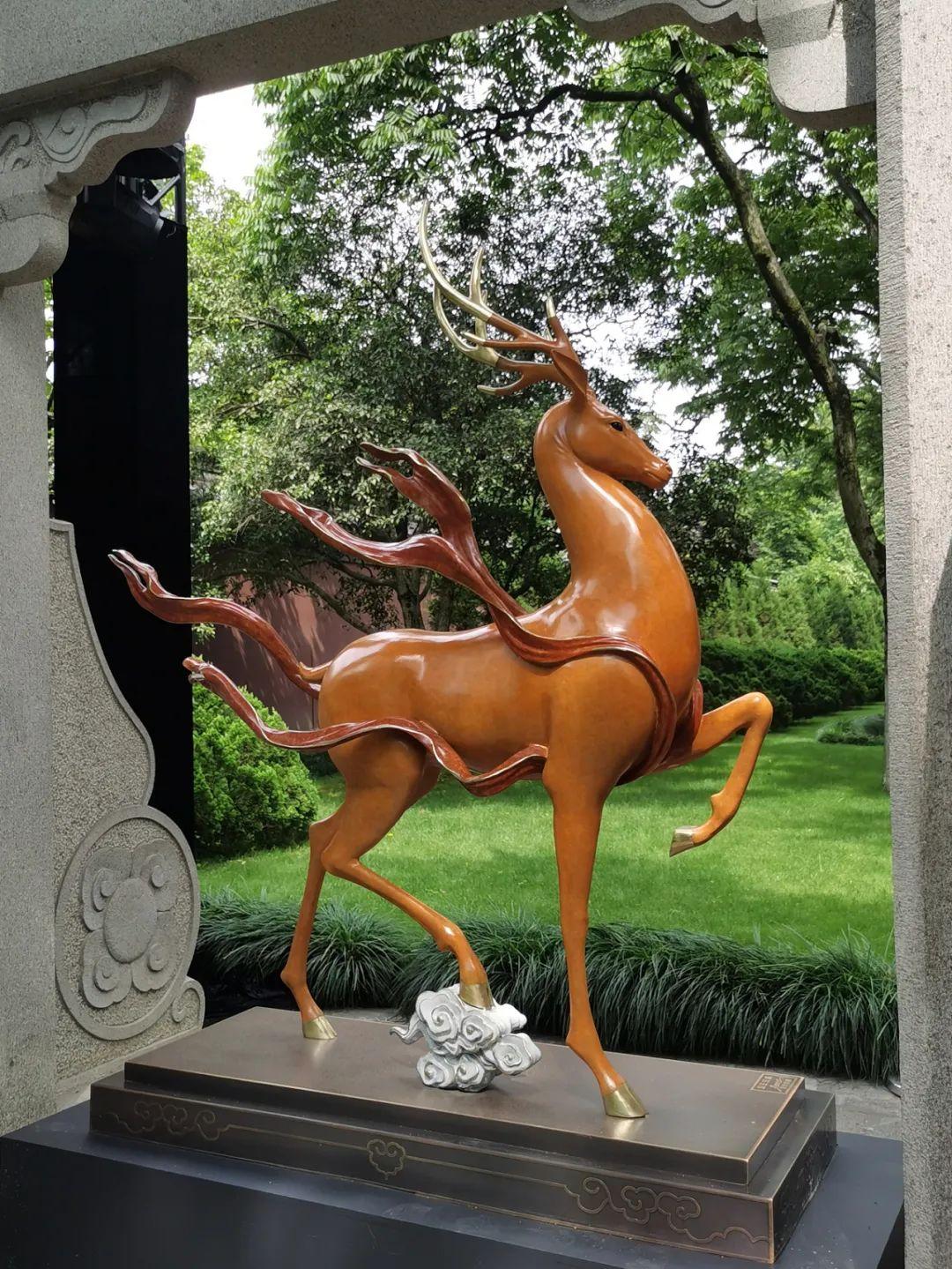 余杭彩灯扎制的南宋官窑玉壶春,剪制出传统纹样的江南花伞,以及朱炳仁的铜雕作品“鹿王天成”