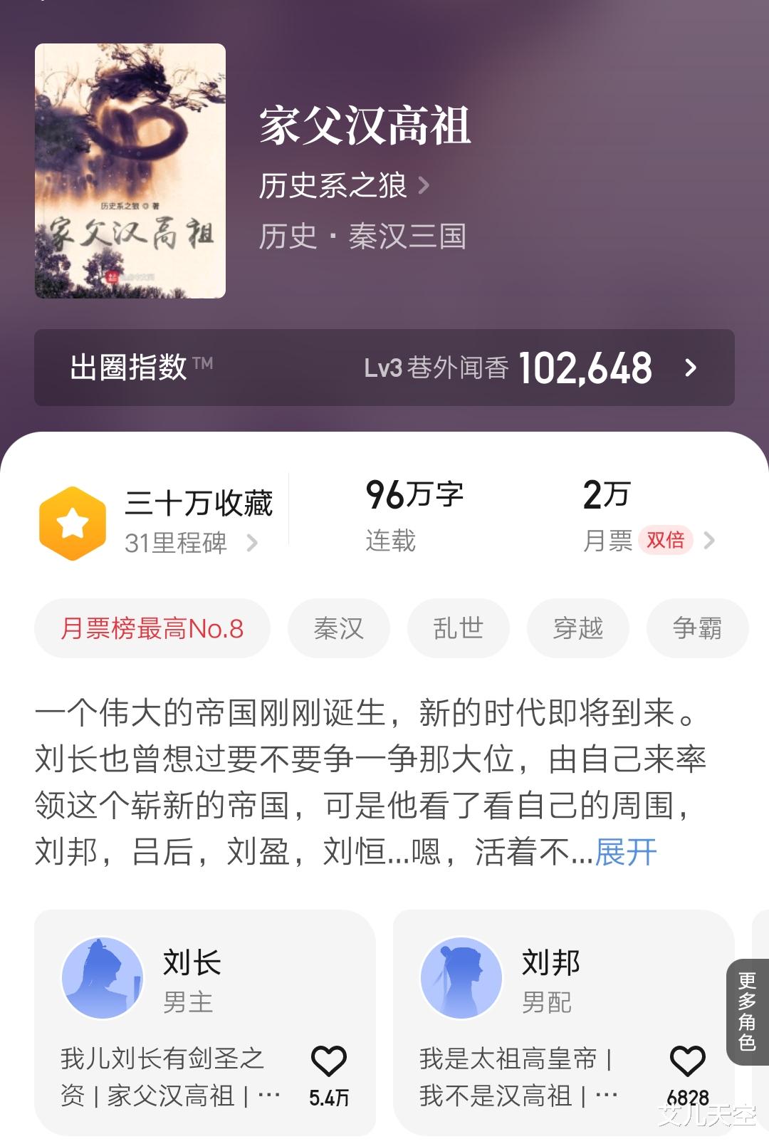 1、《家父汉高祖》均订已近五万