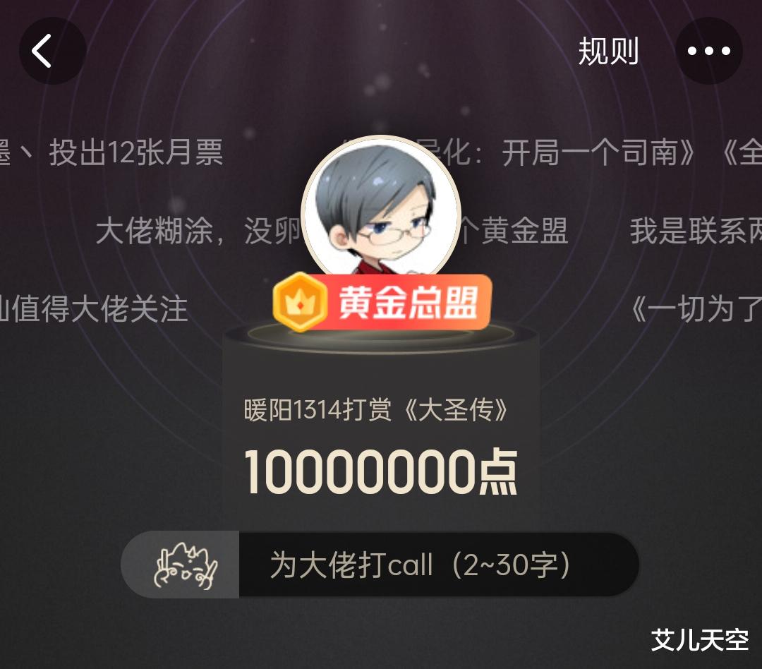 就明后两天,明天就断更两周年了。上个月有个大佬打赏了个白银盟,今天这个大佬也坐不住了直接刷了10万