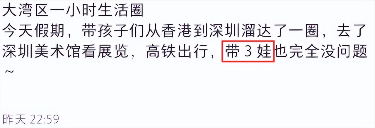据郭晶晶透露称,假期这天(15),她带着孩子们从香港乘坐高铁到深圳“溜达一圈”,独自一人带着仨娃“完全没问题”,丝毫不需要保姆伺候、保镖护航,再次展示亲民一面。