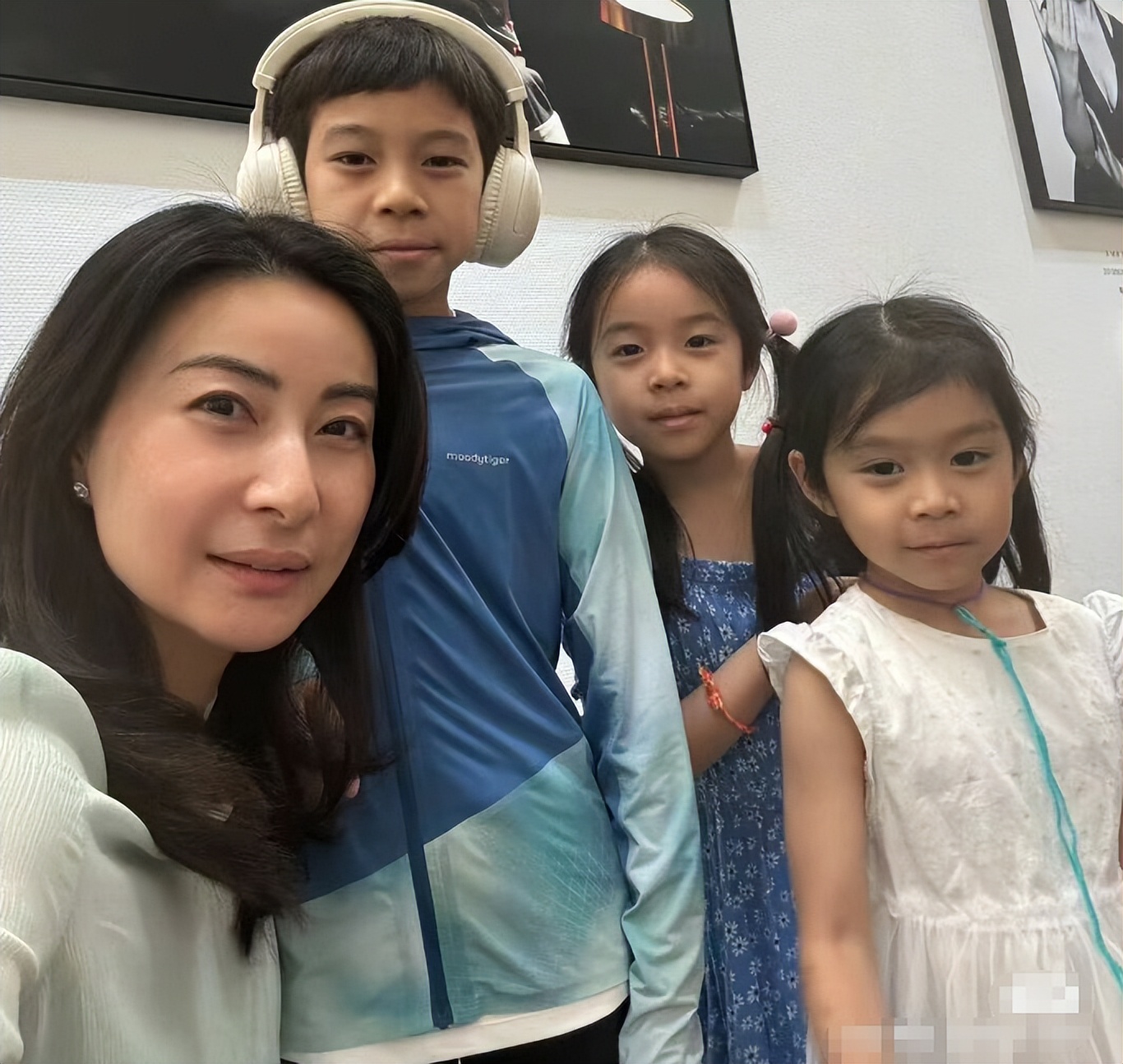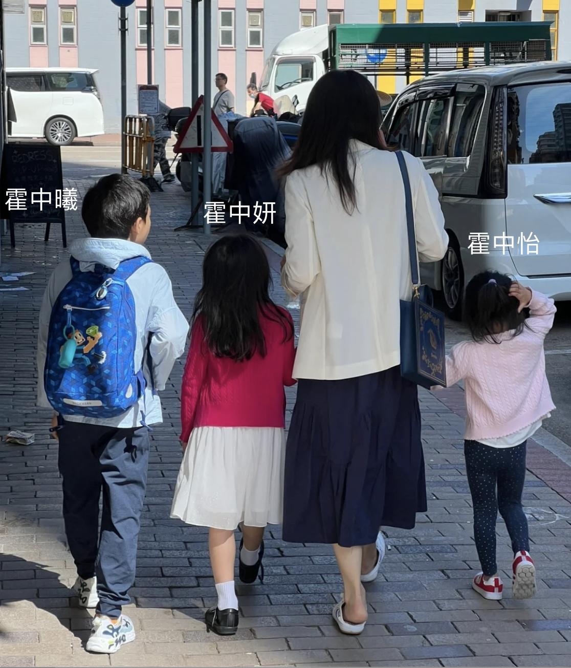 曝光温馨合照中,从左到右分别是10岁半儿子霍中妍、7岁长女霍中妍、5岁幼女霍中怡,兄妹仨人都遗传父母优良基因,有着同款鼻子、眼睛,宛如饼印。