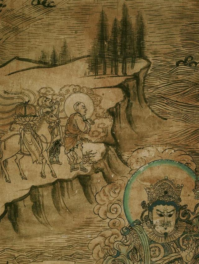 《大唐三藏取经诗话》成书于南宋时期,所谓诗话是当时的一种说唱文学,其中就提到,玄奘一行六人向西天取经,一位白衣秀才从东边赶来,他自称是“花果山紫云洞八万四千铜头铁额猕猴王”,前来帮助玄奘西天取经,玄奘称其为猴行者。之后猴行者作法,带领一行七人到达毗沙门天王宫中做客,天王赐给玄奘隐形帽、钵盂和金环锡杖。