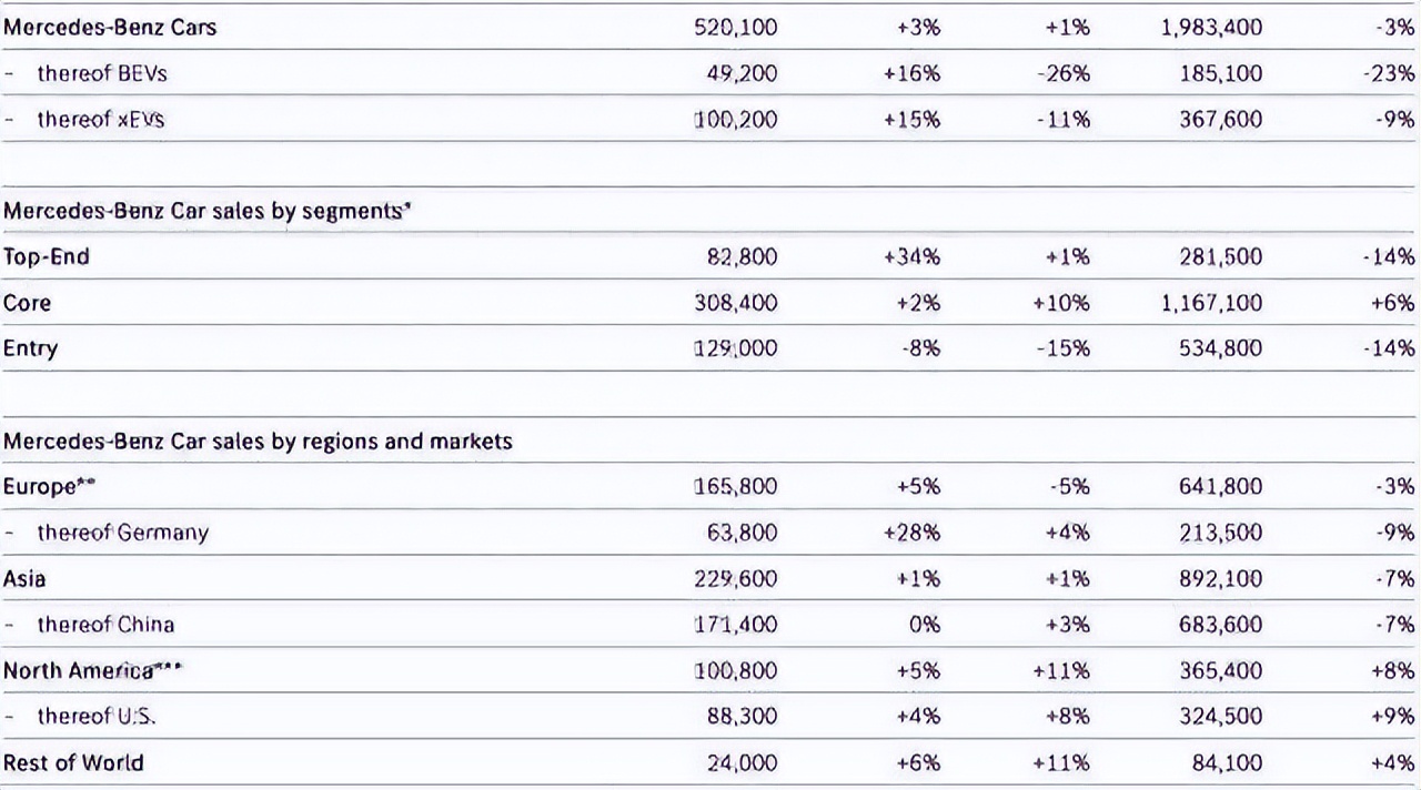 其中,奔驰乘用车在中国的汽车销量同比下降7%至68.36万辆;