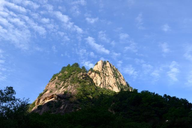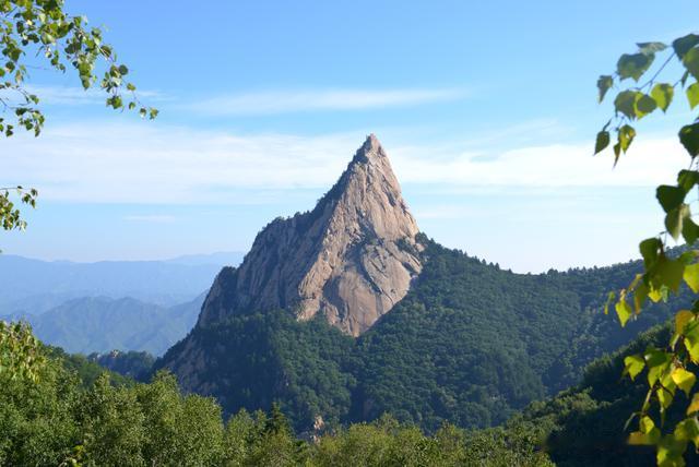 离开“雾灵山清凉界”,驾车继续前行,道路两旁,高大挺拔的树木郁郁葱葱,枝叶交织在一起,形成了一道天然的绿色屏障。阳光透过树叶的缝隙洒下,斑驳的光影在地面上跳跃,如同梦幻般的画卷。大约行驶了10分钟左右,一座类似“金字塔”的山峰扑面而来。