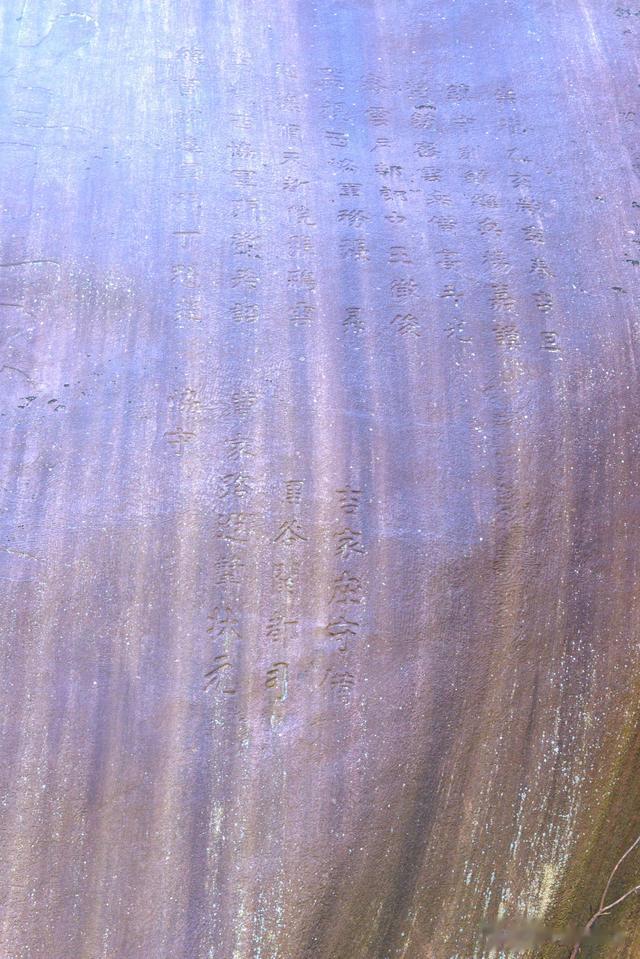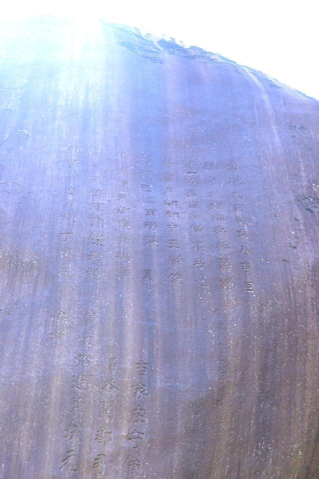 记载的是崇祯八年(1635),杨嘉谟、王徵俊、张升、邓希诏、丁魁楚等众多官员在视察雾灵山一带长城边防时,效仿60多年前兵部尚书谭纶等人,攀登了久负盛名的雾灵山,瞻仰了开国军师赐名的巨石,感受其风光,瞻仰其恢宏,并刻字留念。由于他们所处年代为明朝末年,文字记载不多,但也能辨认出忠君良将和误国、卖国之臣。