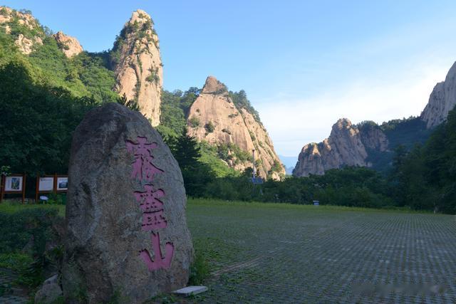 雾灵山北门的西北侧停车场,也是雾灵山北门的山口处立有一块巨石,巨石的侧面镌刻着“霧靈山”三个大字。