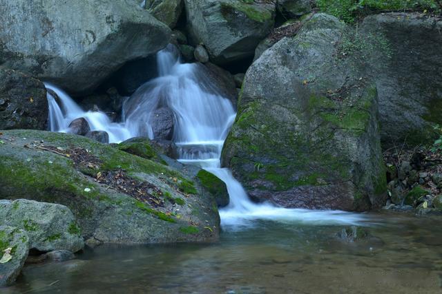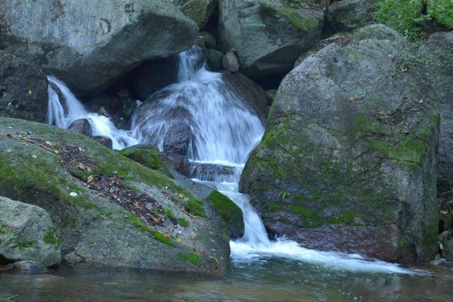 溪水由山顶而下,流经山谷,遇有落差自然成潭,潭水清澈,与周边的山林、花草相互映衬,形成了如诗如画的美景。