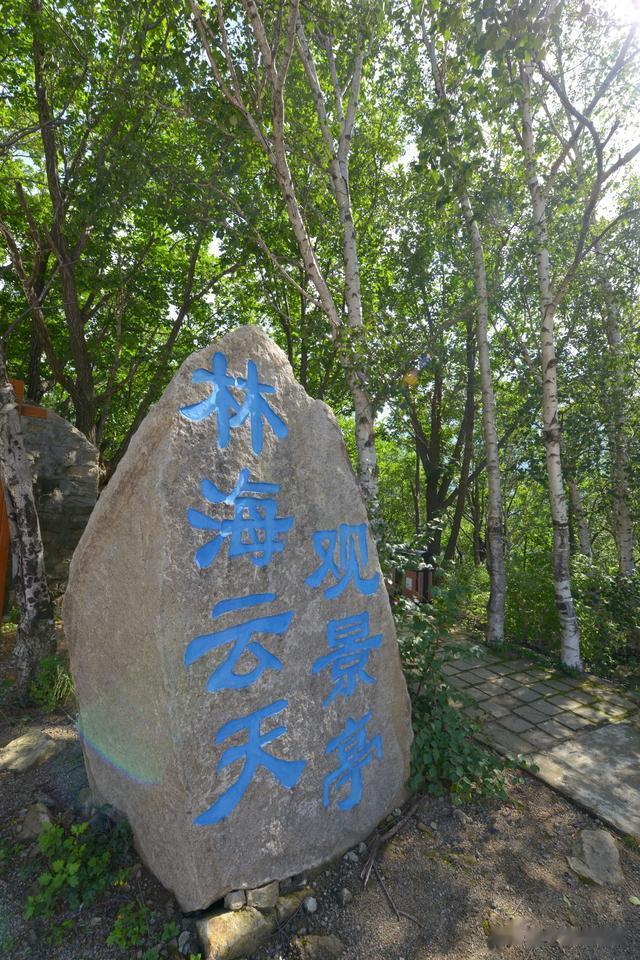 从龙潭停车场至金雕崖步栈道之间修建了悬空观景平台,可以眺望远方的蓝天中镶嵌着条条白云,映衬着郁郁葱葱的“雾灵林海”。