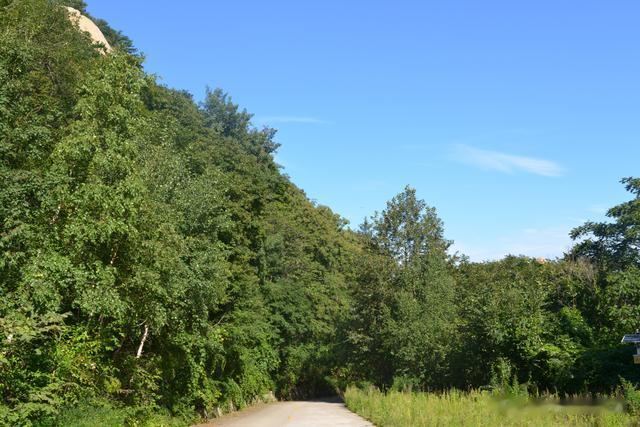 从北门沿着林区公路一路上行,尽管车道有些狭窄,上下两车道,但路面较为平坦,控制好车速,还是非常惬意。沿着蜿蜒的山路前行,车窗外的景色渐渐变得壮美起来。山峦起伏,绿树成荫,那郁郁葱葱的色彩仿佛是大自然用最细腻的笔触勾勒出的画卷。大约行驶了10分钟左右,来到一个山弯处。远方的天鼓峰彷佛一面巨大的战鼓在朝阳的照耀下,熠熠生辉。