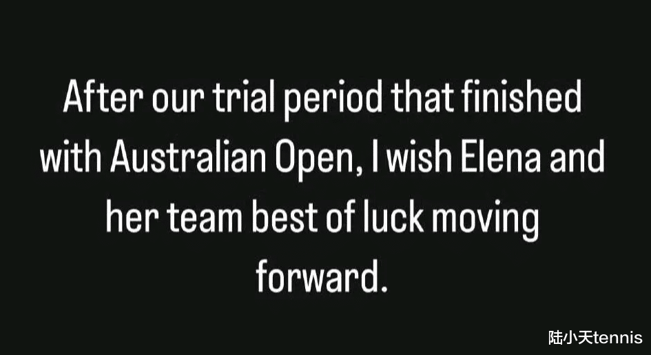 与莱巴金娜在利雅得年终总决赛开始合作的伊万尼塞维奇在今天下午突然宣布不再担任她的教练,他在发文中写道,“结束澳网试用期之后,我祝福伊莲娜和她的团队,前路能有好运。”个人猜测,伊万尼塞维奇离职应该与武科夫存在非常非常紧密的关系,猜测武科夫澳网虽然不可以进入训练场和比赛场地,但是猜测应该和莱巴金娜一直都有私下沟通,或许此举引起伊万的不满。