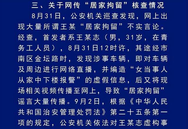 而对于网传的王某是否居家拘留的传言,也算是不攻自破,是根本没有的事,警方的通报算是揭开了这件事的面纱。