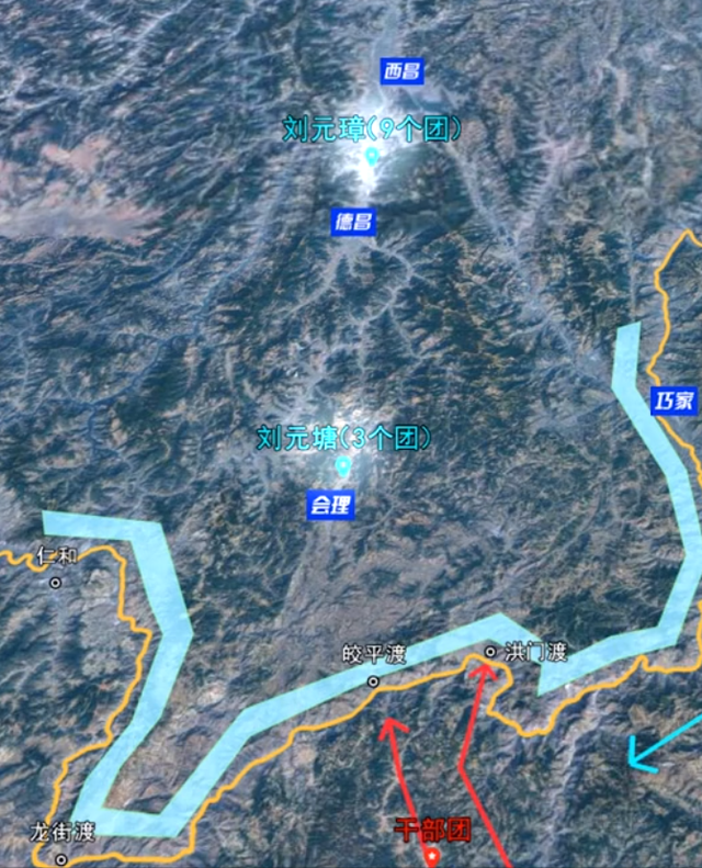 红三军团由彭老总率领,从东侧的洪门渡尝试渡过金沙江。