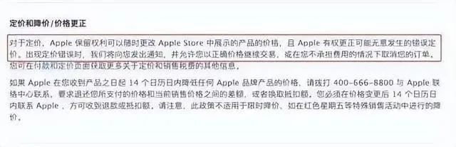 不过,也有电商会取消订单,这也在情理当中。苹果就在相关购买条款中明确:如果发现定价错误,将会通知用户取消订单并全额退款。