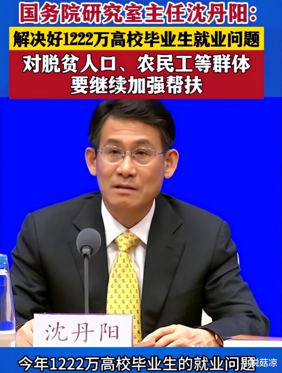 政府也没闲着,沈丹阳主任在发布会上拍胸脯说,要重点解决1222万毕业生的就业问题。