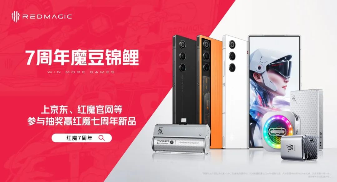 购买产品有福利,参与红魔周年庆活动同样有惊喜。即日起至 4月30日,用户在京东、红魔官网等平台搜索 “红魔7周年” 可参与抽奖,有机会免费赢取红魔10 Air 手机、红魔散热器 6 Pro 及全系氘锋配件,化身“天选锦鲤”。