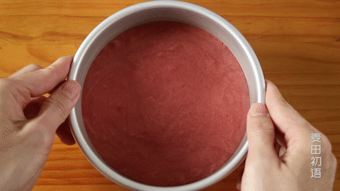烘烤期间蛋糕会膨胀至最高点后回落,轻微开裂是正常现象。由于红色的蛋糕不易通过上色情况来判断生熟,你可以用插竹签的方式来检验。烘烤时间到后将蛋糕移出烤箱,在桌面震出热气,马上倒扣冷却,要等完全冷却(至少1个小时)后再脱离模具。