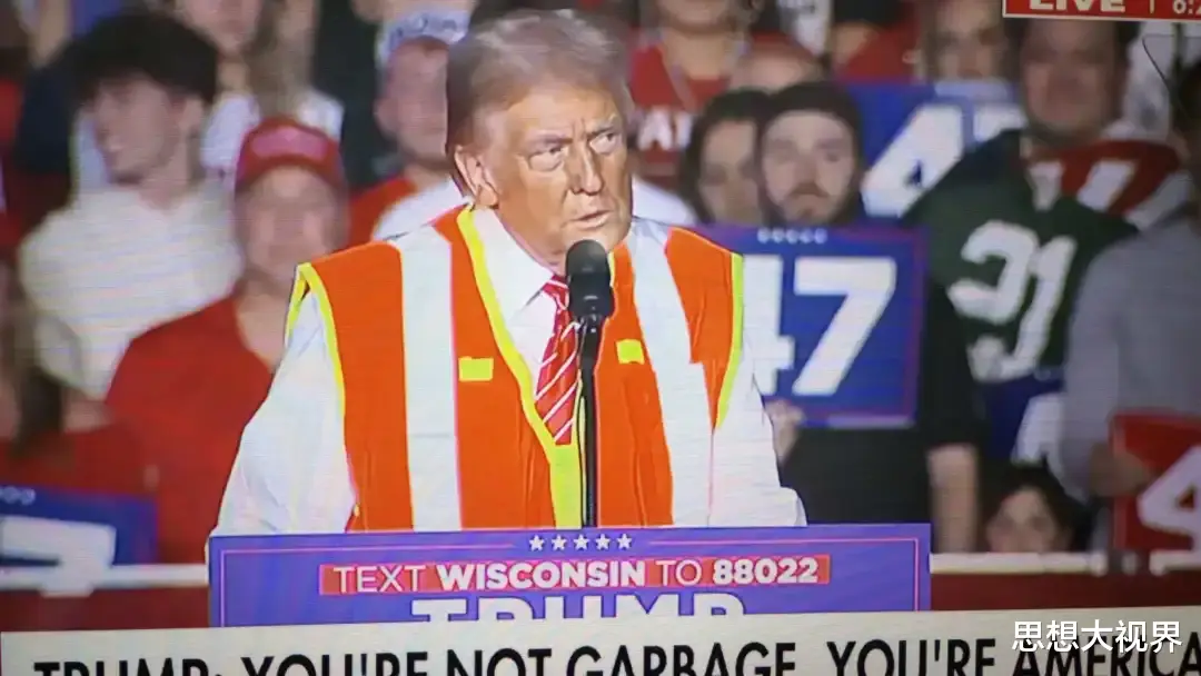 川普在最新的集会演讲中,已经穿上了环卫工衣服,这意思很明显,我是环卫工,我要收垃圾,而且要在11月5日大收垃圾。
