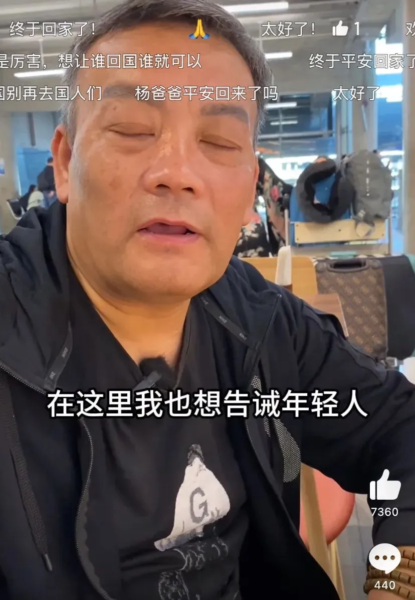 杨爸在报平安的视频中还提醒告诫年轻人,要多个心眼,不要轻信他人,不要存侥幸心理。这个真的很重要,出了事再挽救是很不好办的,提前自己预防还要更好操作一点。
