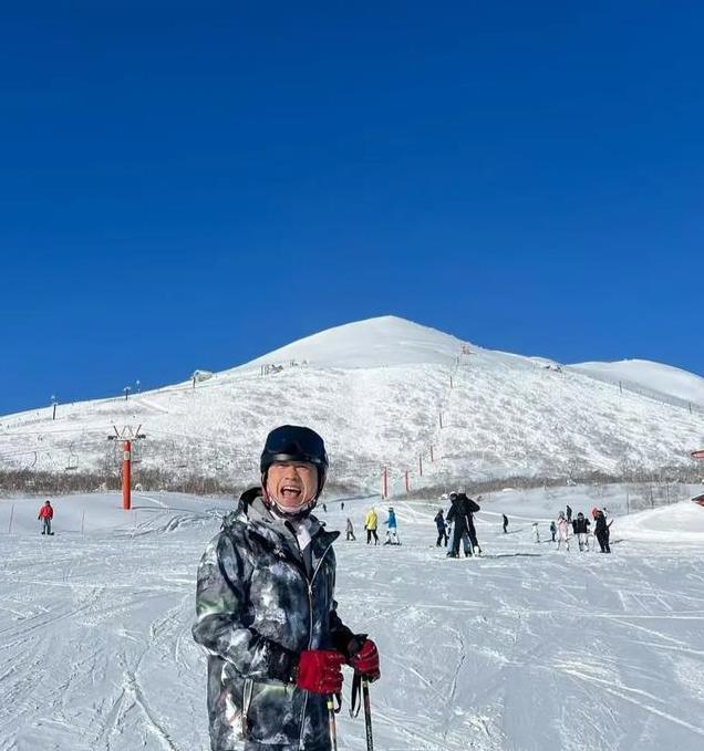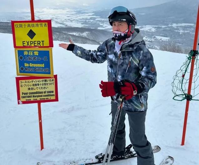 63岁的庾澄庆身穿花色滑雪服,这次携全家在北海道滑雪,全程满脸笑容看起来活力满满。