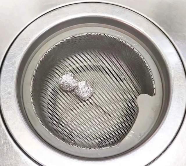 所以如果你有这样的烦恼,不如试一试,将锡纸裁剪成小块,然后卷成球,放在排水管道上面的滤网上,这样每次冲水,滚动锡纸球,就能轻松剥离下水管的污垢。