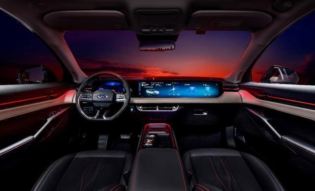 外观方面,前格栅采用3D参数化鳞甲设计,搭配经典“鲨鱼口”造型,颜值出众。车身尺寸为4935×1875×1500mm,轴距2945mm,同级领先。车内配1.1米大屏及SYNC+2.0系统,功能丰富。