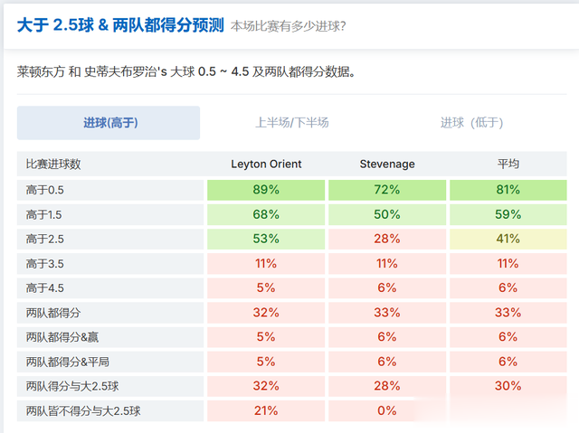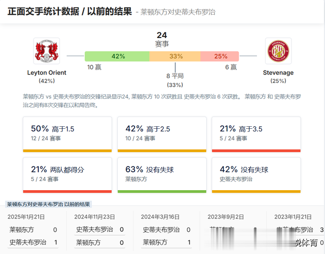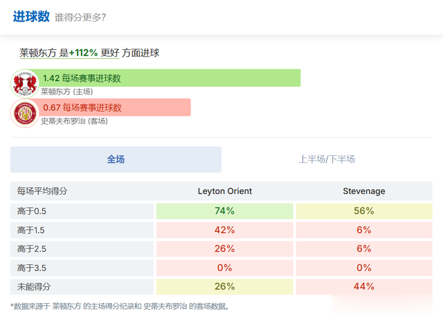 最可能比分:莱顿东方 2-1 斯蒂夫尼奇(概率34%)黑马剧本:1-1平局(概率27%)惊天冷门:0-1客胜(概率15%)