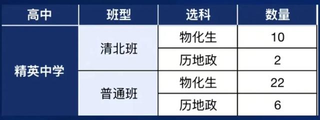 相对于其他学校,一中(本部)分班还是有一些多样性的,而且一中向来会把分层教学做得比较细致。从分班情况看,主要选科有物化生、物化政、物化地、史地政4大方向。选科物化生的人数最多,班级数量也最多。其中,物化生一共16个班,主要设置3个班型,其中小班5个、英才班6个、重点班5个。从班型的名字上我们也能隐约感觉到,物化生班型聚集了学校的优质生源,最差的也是重点班起步。而物化地和物化政分别有1个平行班,虽然也选择了大理科,但可以作为物化生的平行班看待。文科方面,只有一个史地政的英才班,还有2个史地政的平行班。也就说文科大类只能选科史地政这三科,且只有1个好班型,毕竟文科招生人数本来就很少,选科的意义不大。