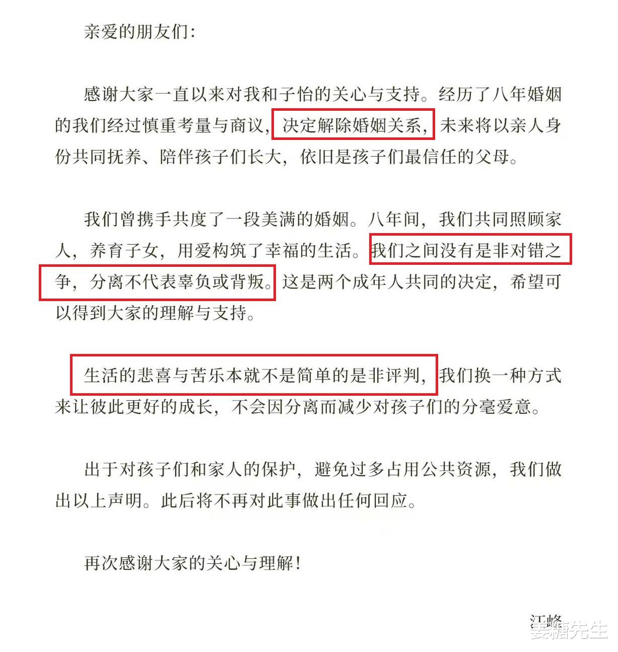 离婚是一件很私人的事情,我们无法完全了解他们的内心和背后的故事。希望他们能够以平和的心态面对这个决定,并且在未来的生活中找到属于自己的幸福