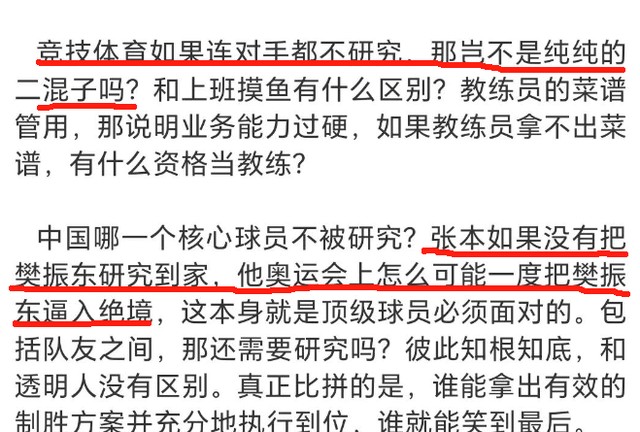 为了让广大球迷们更加明白他说的话,还特意举了一个例子,那就是奥运男单上樊振东对战张本智和。