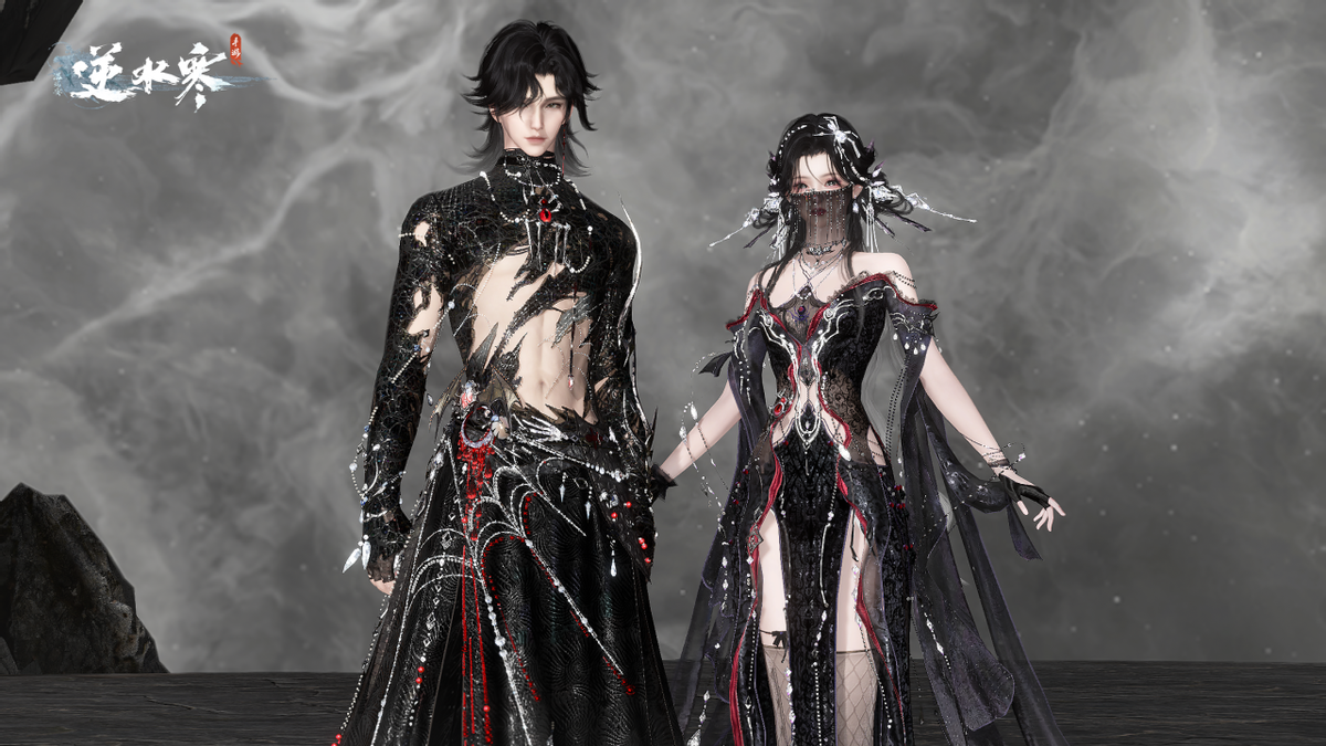 这套时装即将的9月19日周四登上《逆水寒》手游的舞台,如果你认为只有这时装本体,那就大错特错了!【悬蛛结心】全家桶,安排!获得【悬蛛结心】,即可同步解锁专属黑发头像、单人动作特效、双人动作特效、配饰【落丝帘】与群龙之首结算动画。