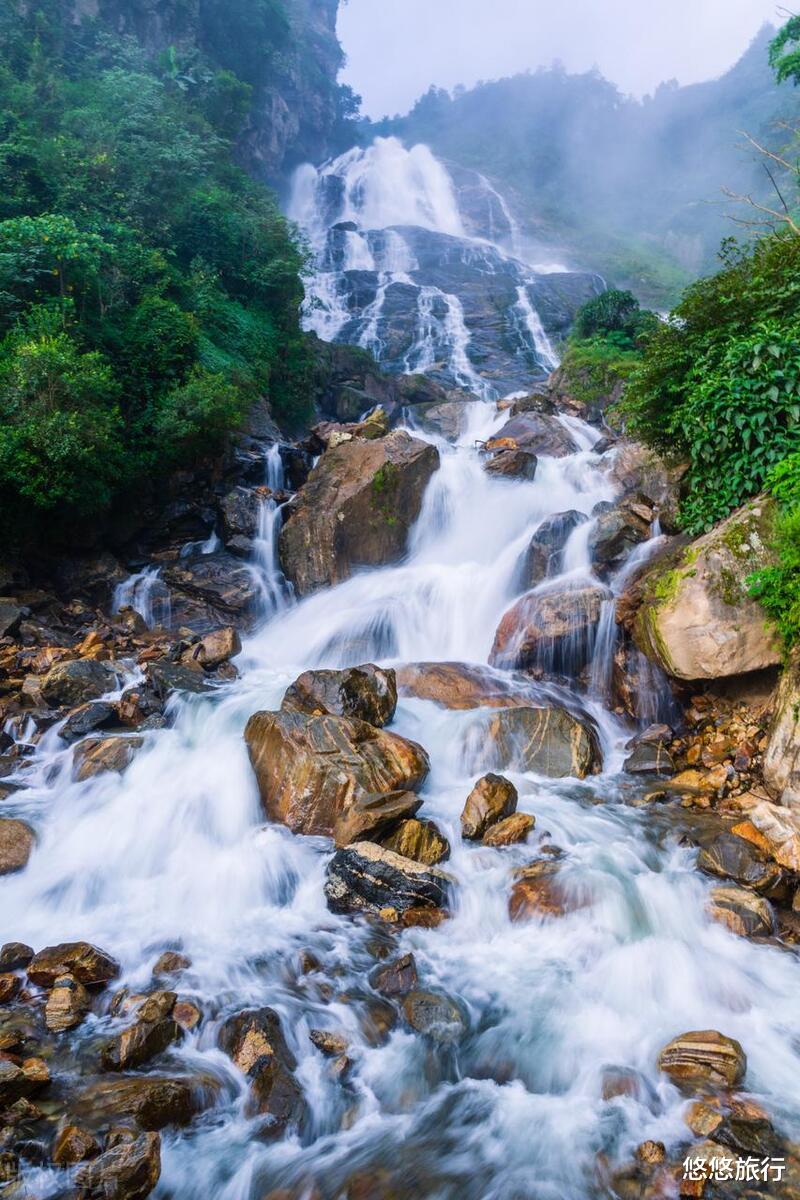 5、南恩瀑布南恩瀑布就在省道S307路边上,不同于其他的瀑布,它横穿公路,迎面而来,不需要门票,夏天特别凉爽。瀑布落差很大,可看到大量裸露的岩石。