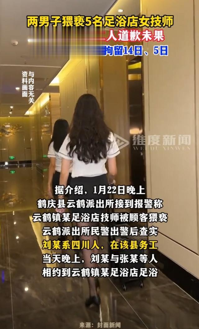 要说这俩人,也真是胆大包天。据了解,刘某是四川人,在鹤庆县打工。平时可能觉得生活无聊,就想着找点“乐子”。那天晚上,他和张某几个人一起,来到了这家足浴店。按理说,大家都是出来放松的,享受一下服务,也无可厚非。可这刘某和张某,心思可就不正了。