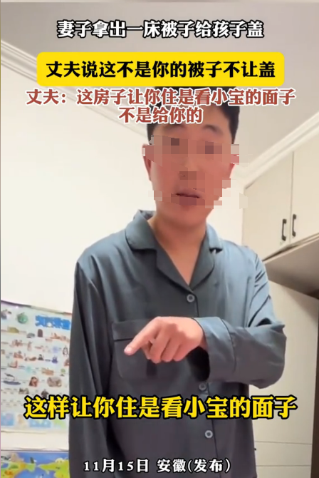 单独说这个视频,表现出来的就是丈夫太小气了,天太冷了盖俩被子怎么了,不是你的被子不能盖,这是哪一年的规矩?