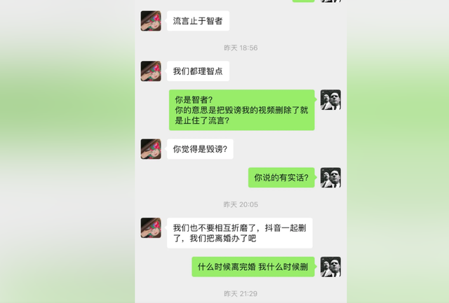 两个人现在就是:你删掉视频我就离婚;你先离婚我再删除视频。