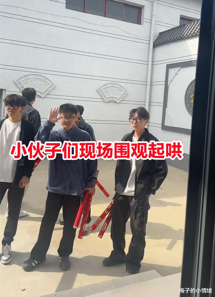 小伙此刻心思和注意力都在女孩身上,哪里顾得到这些,一心只想跟她单独多待一会儿,就在小伙想要跟女孩继续腻歪的时候门口突然蹦出三名小帅哥冲着新郎招手,表情里一脸意味深长。