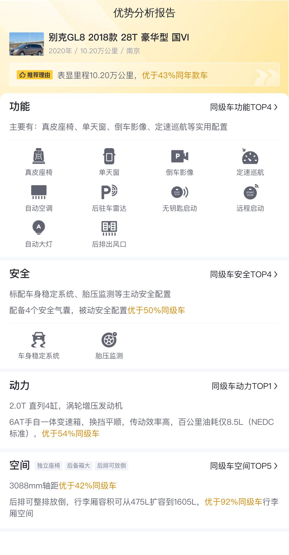 先介绍一下这辆二手别克GL8的基本情况,该车具体版本是——别克GL8 2018款 28T 豪华型 国VI,咖啡色,前驱7座MPV,该车于2020年5月首次上牌,期间过户1次,车源地跟上牌地均为南京,累计行驶里程是10.2万公里,未超过法定报废里程。这辆车的新车指导价为25.29万,目前二手车报价为11.38万。