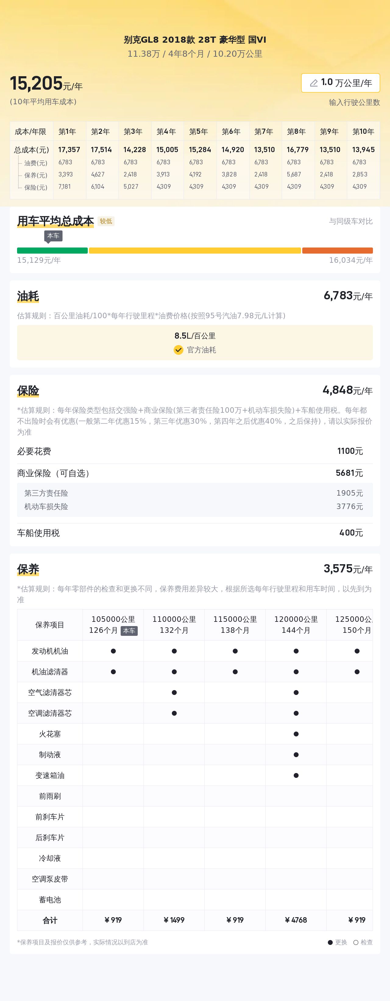这辆车的年均综合用车成本大概在每年1.5万元左右,实际费用开销会根据车主的使用情况有所变动。