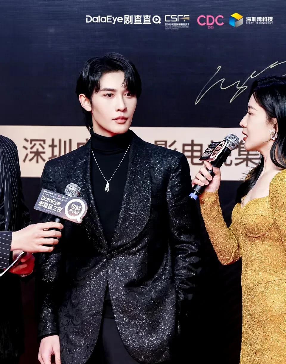 咱们先来聊聊红毯上的西装暴击。申浩男不愧是短剧圈公认的衣架子,这天晚上穿着改良款黑西装,稳重大气的底色藏着心机。衣服上那些若隐若现的亮片在闪光灯下简直像撒了层细钻,内搭黑高领配银链子,霸道总裁的标配愣是被他穿出了新花样。最带劲的是场外候着的应援车队,几十辆车身统一贴着应援字样的豪车整整齐齐排成排,这场面跟拍大片似的,让人直呼小说里的情节成真了。